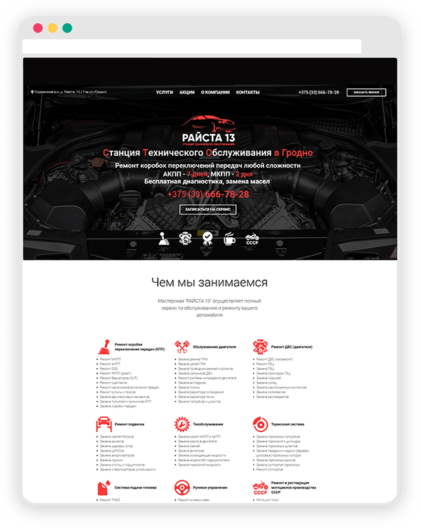 После работы с вами, ко мне стало обращаться больше клиентов и увеличилась выручка. Благодарю за сайт и за то, что уделили мне много времени. Теперь мое СТО можно найти в интернете, и я больше не буду терять клиентов. Спасибо менеджеру Андрею, за внимательность и терпение в работе. Приятно, что перезваниваете и интересуетесь результатом, значит, переживаете за свой труд.